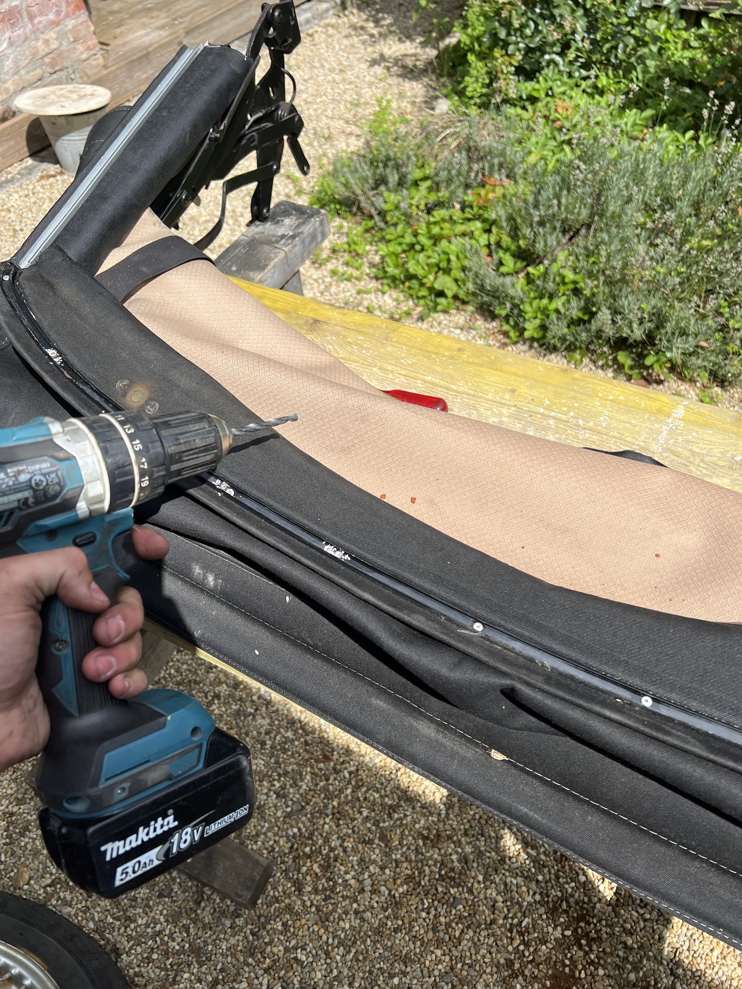 Anpassung und Einbau einer Verdeck-Außenhaut aus Sonnenland-Verdeckmaterial